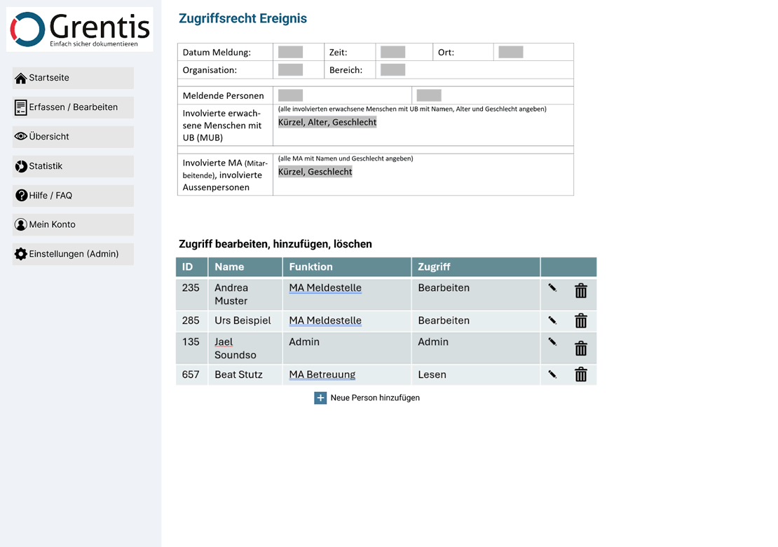 - Ereignisbezogene Zugriffsrechte (Sie bestimmen, welche Personen auf welche Ereignismeldung Zugriff haben)