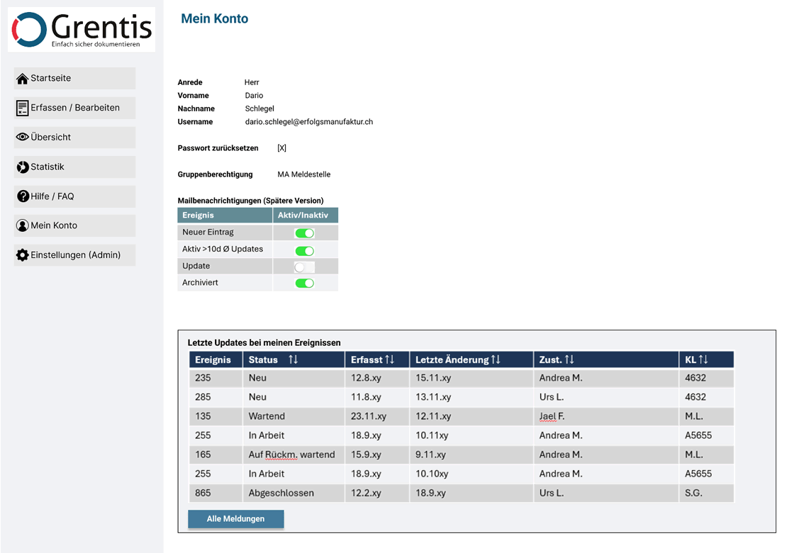- Automatisierte Reminder (Mail) bei neuen Meldungen, aktive Meldungen ohne Änderungen, …