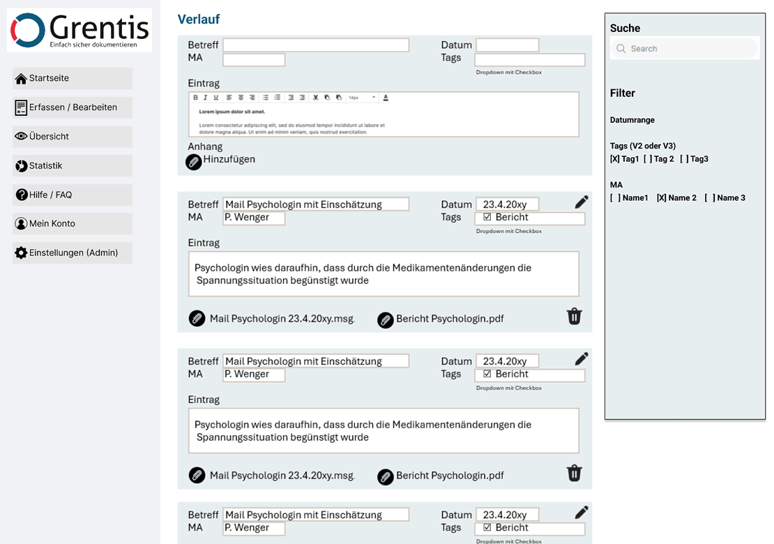 Die Screenshots stammen aus dem Prototyp. Dieser zeigt die geplanten Funktionen und deren Zusammenhang. Die finale Version kann und wird in den Funktionen und im Aussehen vom Prototyp abweichen.